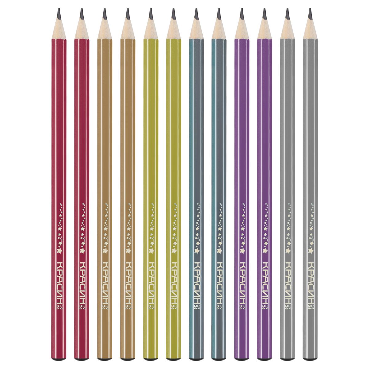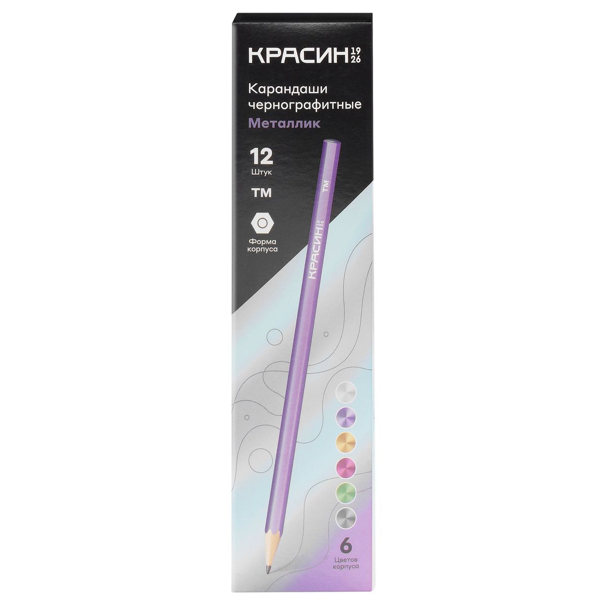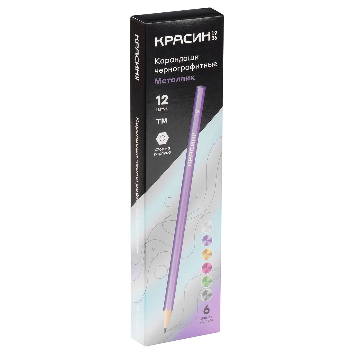 Карандаш ч/г Красин "Металлик" ТМ (НВ), шестигран., заточен., ассорти.