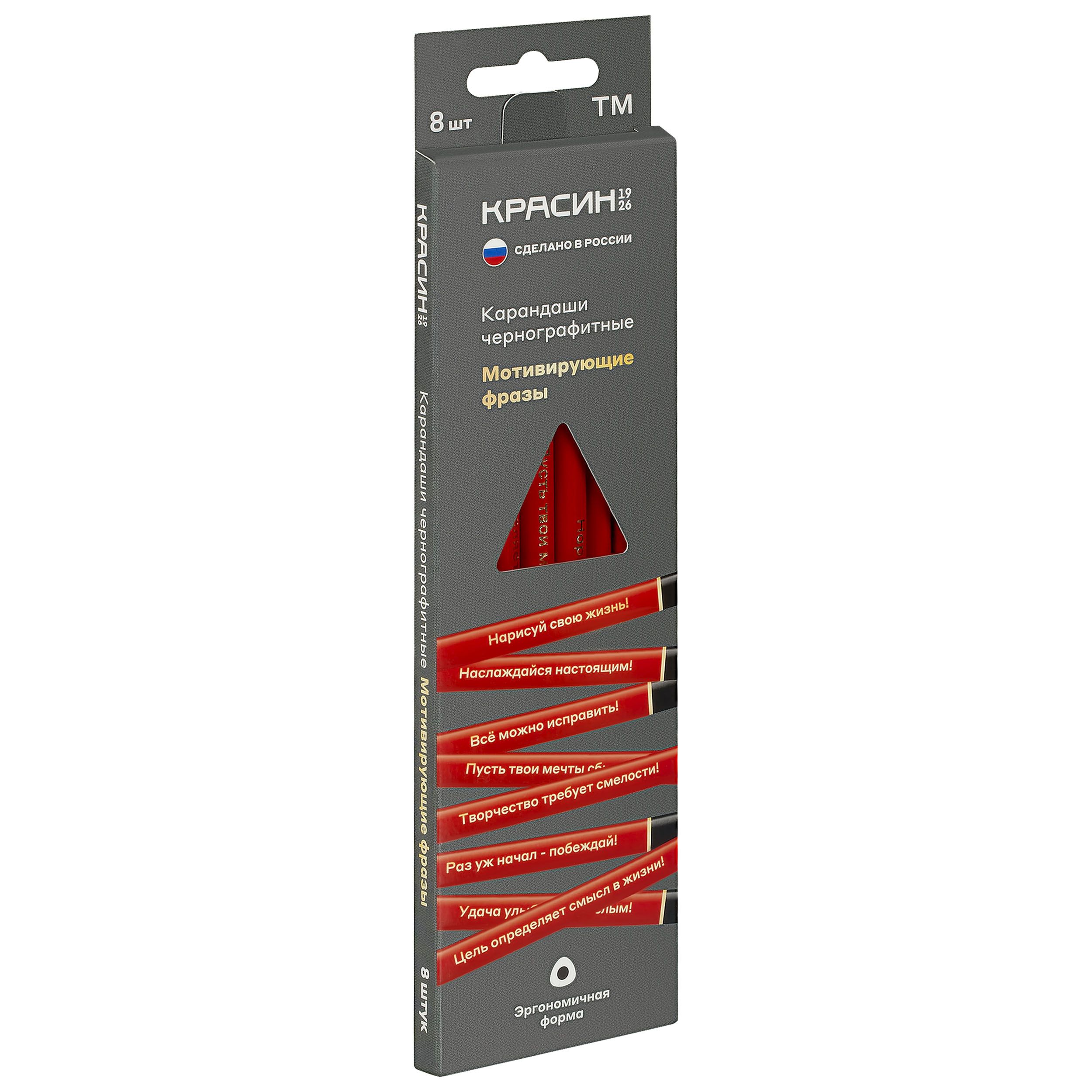 Карандаш ч/г Красин "Мотивирующие фразы" ТМ, трехгран., заточен., корпус красный