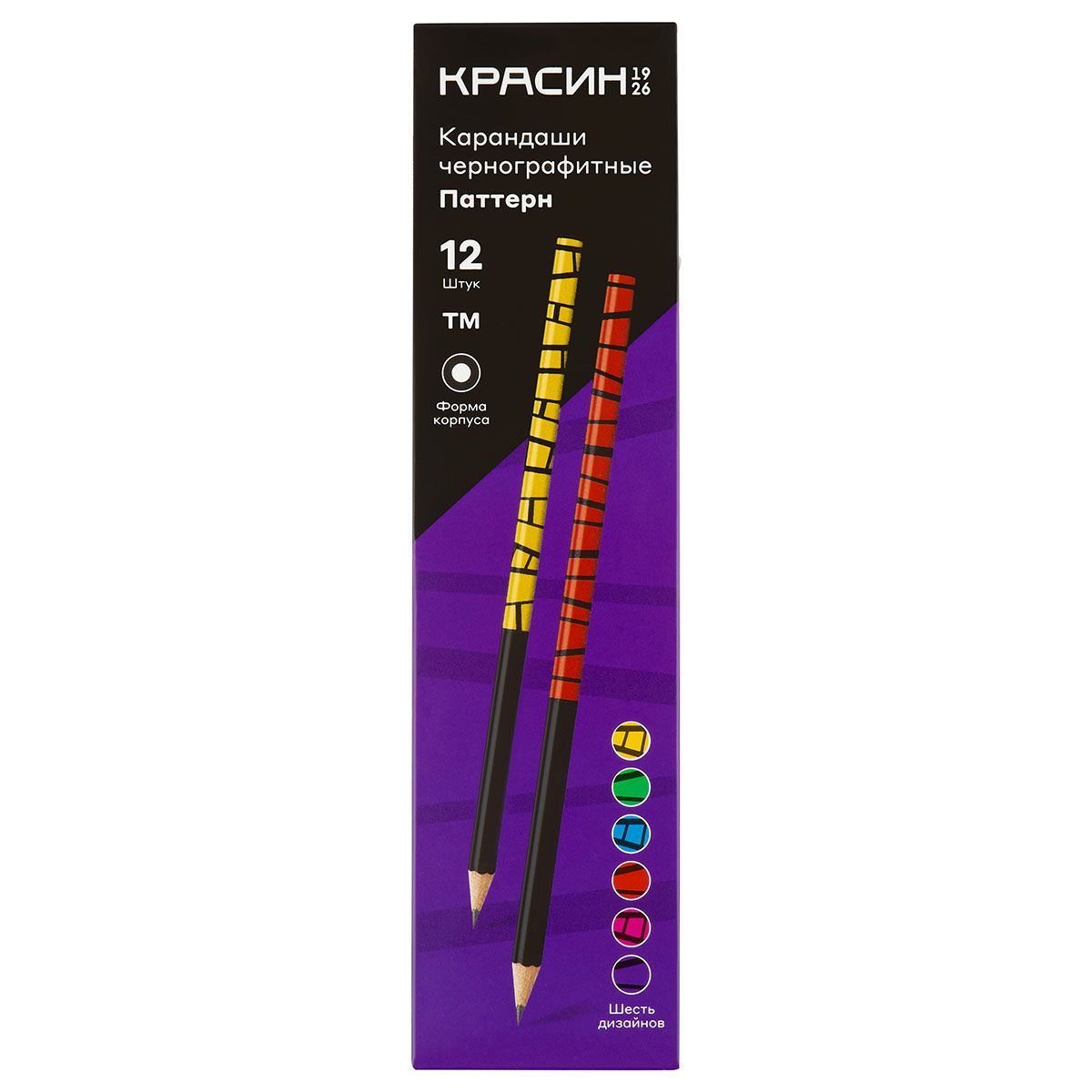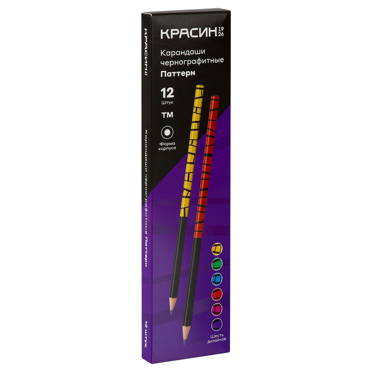 Карандаш ч/г Красин "Паттерн" ТМ (НВ), кругл., заточен., ассорти.