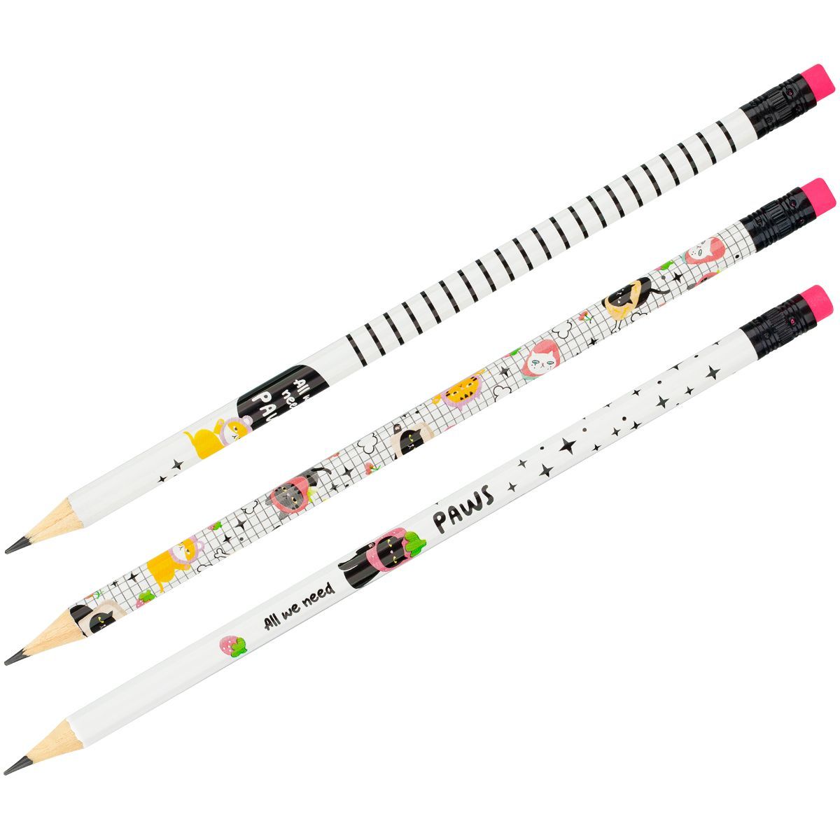 Карандаш ч/г MESHU "Cat paws", HB, заточен., с печатью, с ластиком, ассорти, туба