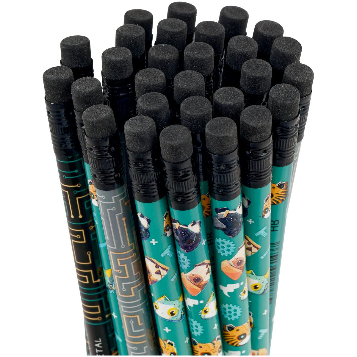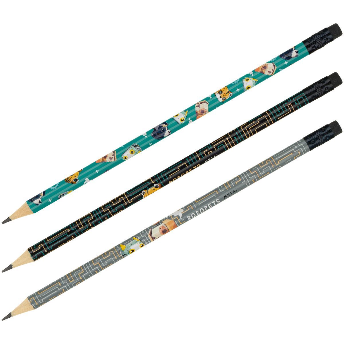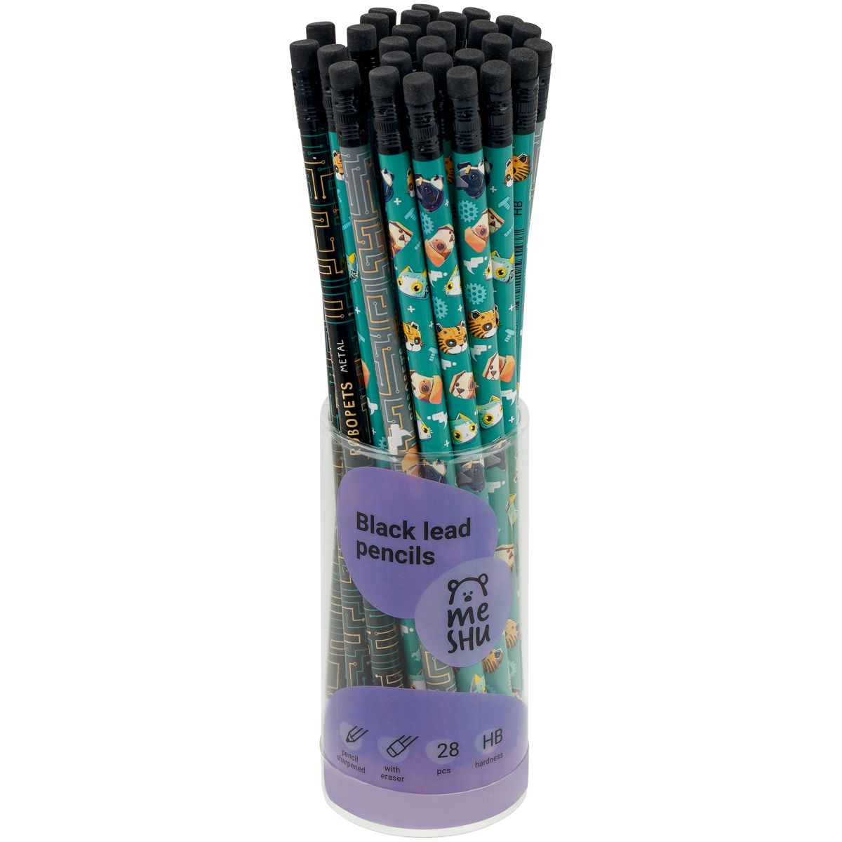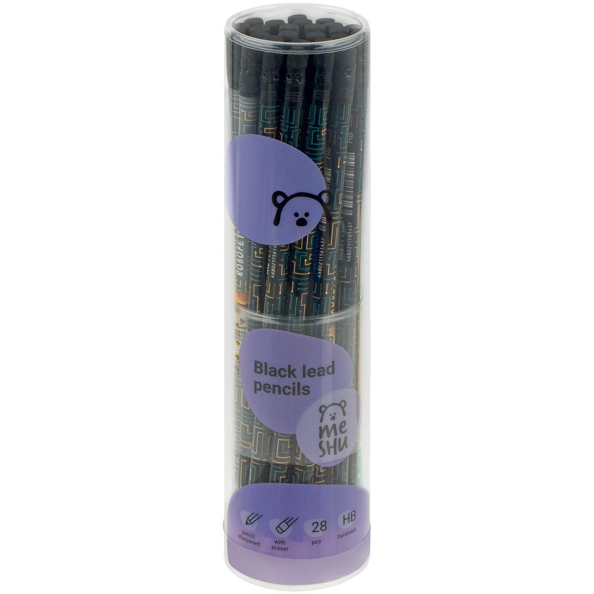 Карандаш ч/г MESHU "Robopets", HB, заточен., с печатью, с ластиком, ассорти, туба