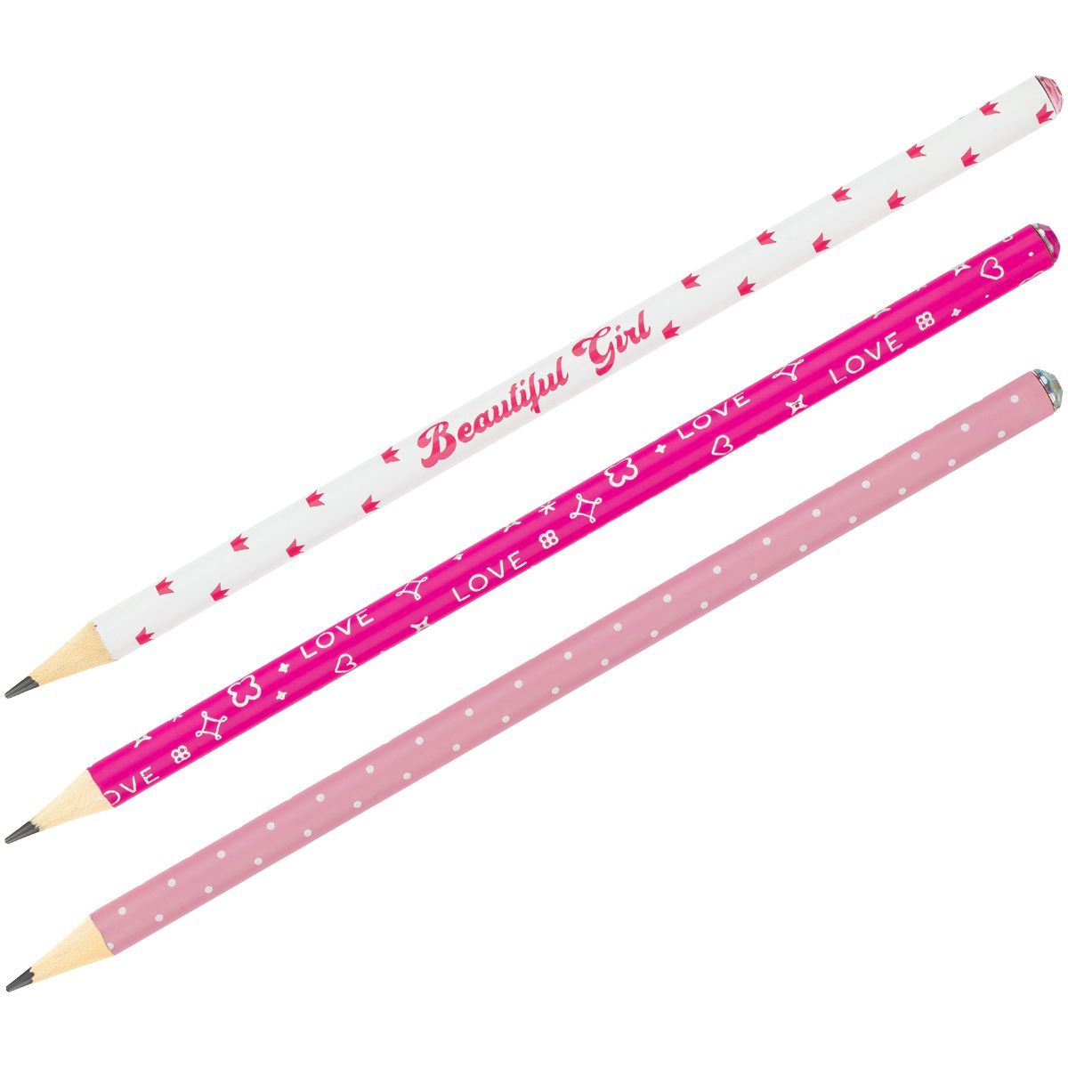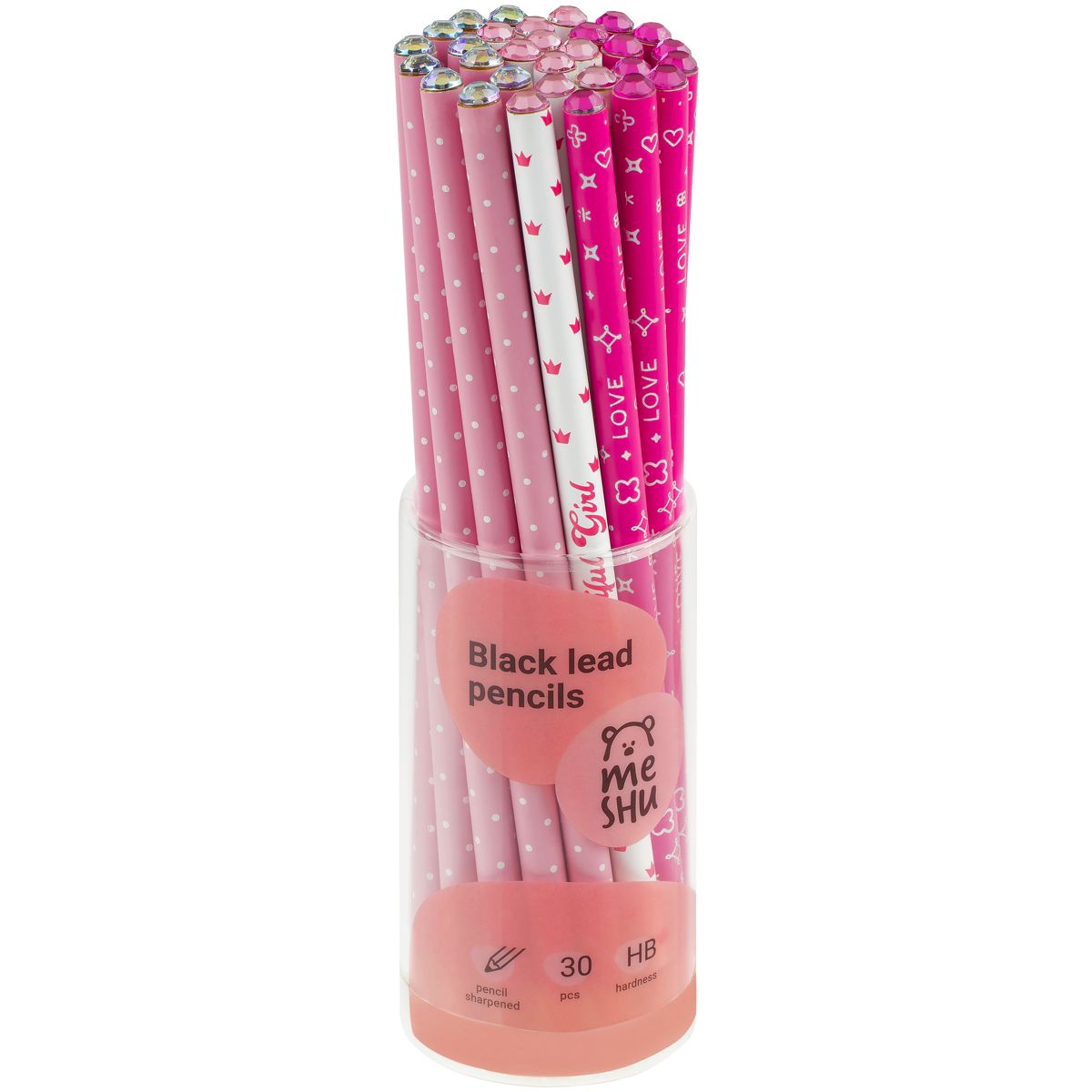 Карандаш ч/г MESHU "Sweet girl", HB, заточен., c фольгированием, стразы на топе, без ластика, ассорти, туба