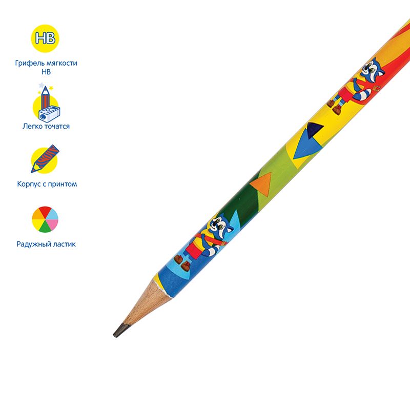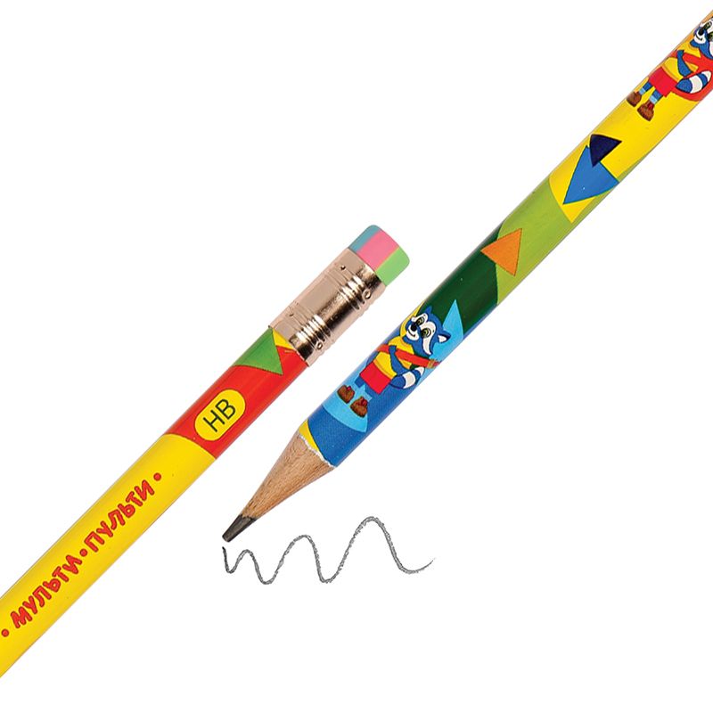 Карандаш ч/г Мульти-Пульти "Приключения Енота" HB, с ластиком, круглый, заточен., рисунок на корп. ассорти
