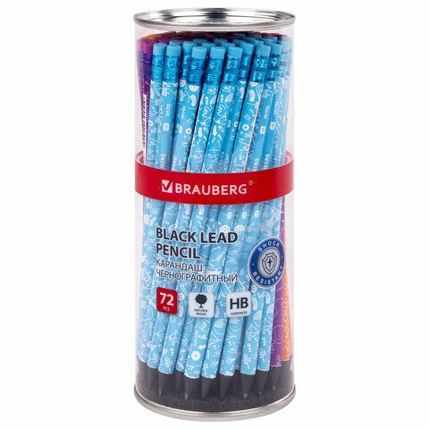 Карандаш чернографитный BRAUBERG "EXAM", 1 шт., HB, с ластиком, корпус ассорти, 181753