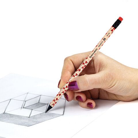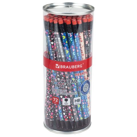 Карандаш чернографитный BRAUBERG "HEARTS", 1 шт., HB, с ластиком, корпус ассорти, 181762