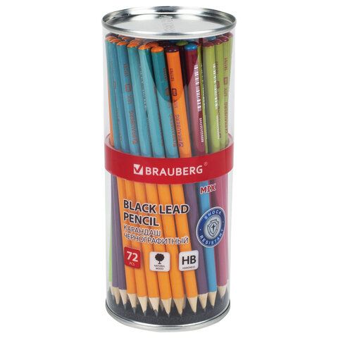 Карандаш чернографитный BRAUBERG "MIX", 1 шт., HB, корпус ассорти, 181761