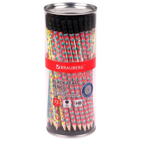 Карандаш чернографитный BRAUBERG "PATTERNS", 1 шт., HB, с ластиком, корпус ассорти, 181748