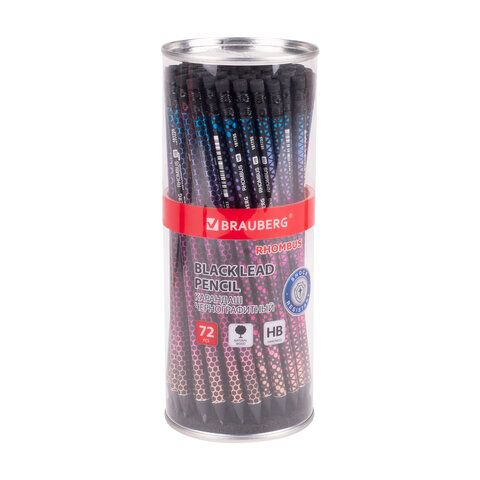 Карандаш чернографитный BRAUBERG "RHOMBUS", 1 шт., HB, с ластиком, корпус ассорти, 181755