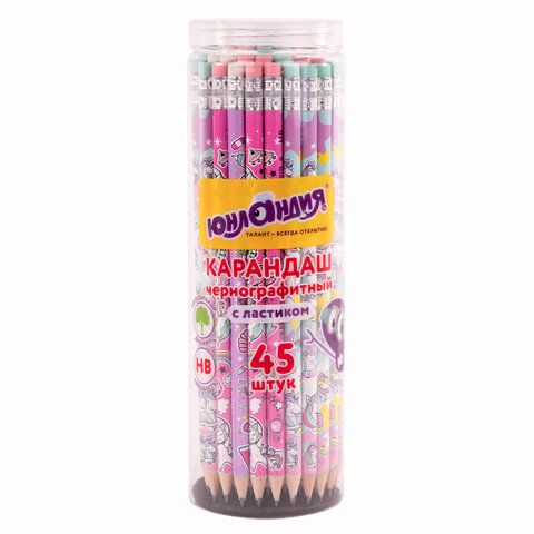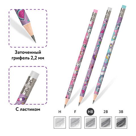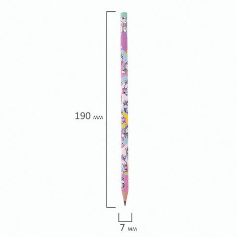 Карандаш чернографитный ЮНЛАНДИЯ "ЕДИНОРОГИ", 1 шт., HB, с ластиком, корпус ассорти, 181780