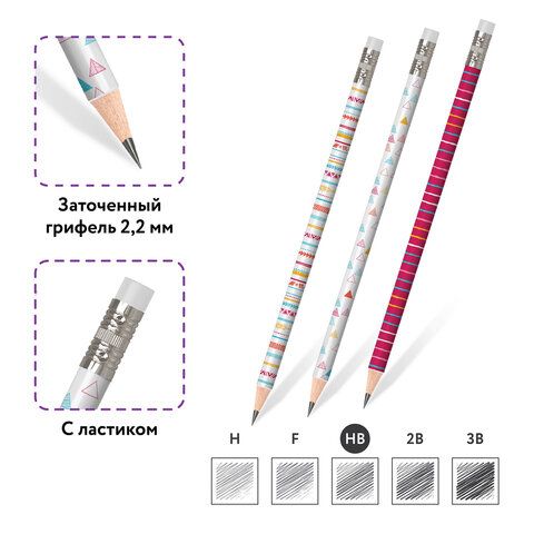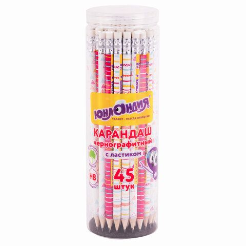 Карандаш чернографитный ЮНЛАНДИЯ "ГЕОМЕТРИЯ", 1 шт., HB, с ластиком, корпус ассорти, 181775