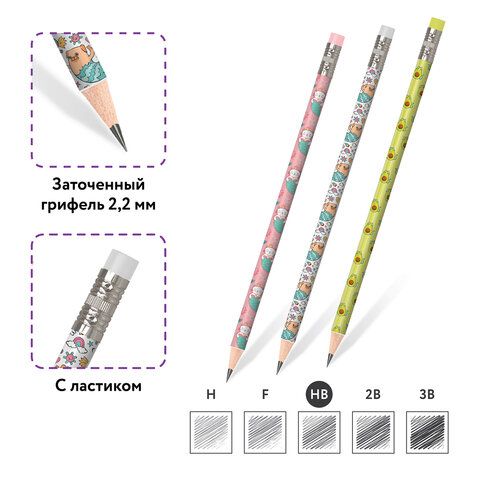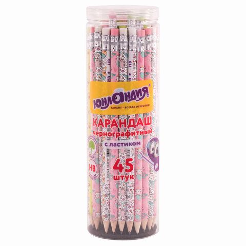 Карандаш чернографитный ЮНЛАНДИЯ "МАГИЯ", 1 шт., HB, с ластиком, корпус ассорти, 181778