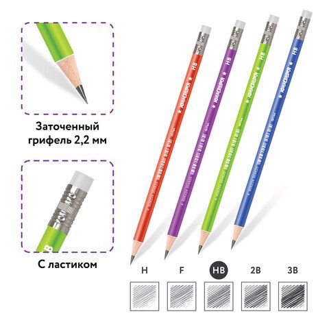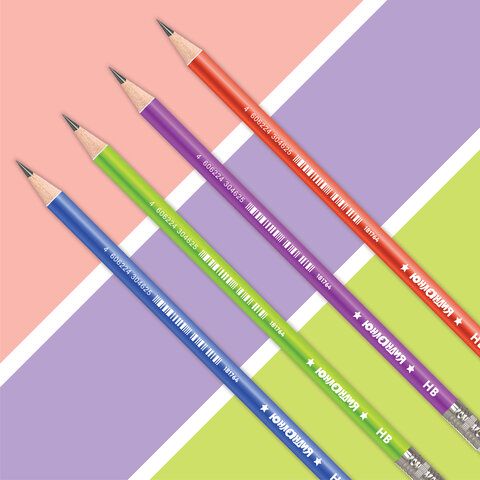 Карандаш чернографитный ЮНЛАНДИЯ "МЕТАЛЛИК", 1 шт., HB, с ластиком, корпус ассорти, 181764