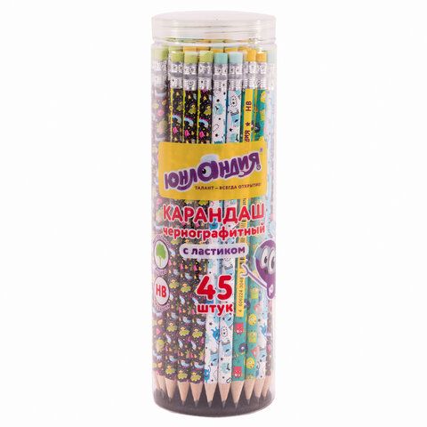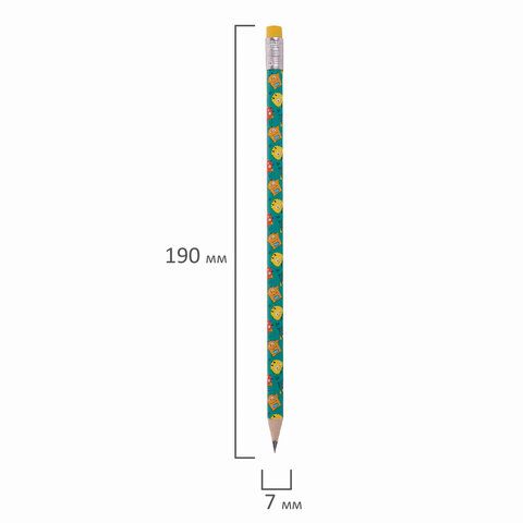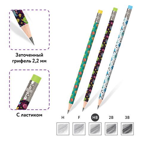 Карандаш чернографитный ЮНЛАНДИЯ "МОНСТРИКИ", 1 шт., HB, с ластиком, корпус ассорти, 181782
