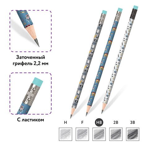 Карандаш чернографитный ЮНЛАНДИЯ "ЩЕНОК", 1 шт., HB, с ластиком, корпус ассорти, 181774