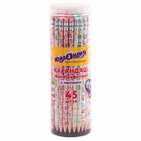 Карандаш чернографитный ЮНЛАНДИЯ "СОВУШКА", 1 шт., HB, с ластиком, корпус ассорти, 181772