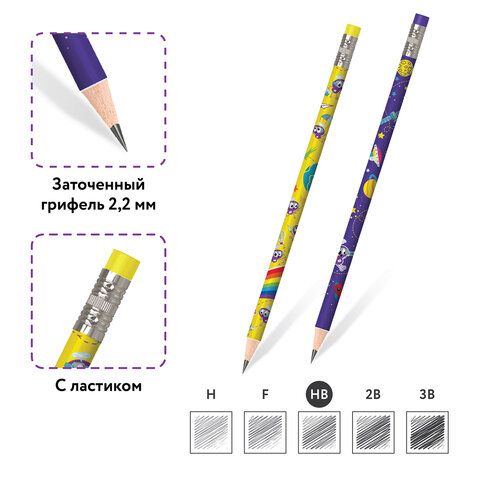 Карандаш чернографитный ЮНЛАНДИЯ "ЮНЛАНДИК", 1 шт., HB, с ластиком, корпус ассорти, 181752