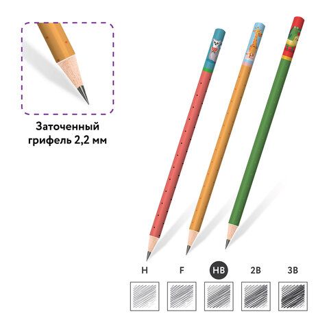 Карандаш чернографитный ЮНЛАНДИЯ "ЗВЕРУШКИ", 1 шт., HB, корпус ассорти, 181779