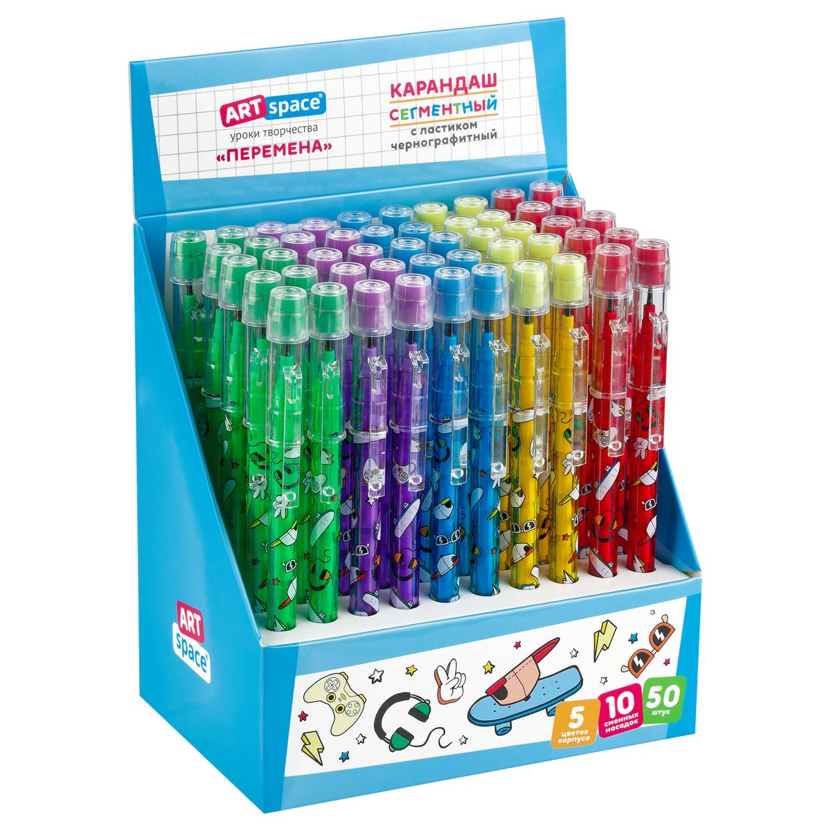 Карандаш сегментный ArtSpace "Перемена", с ластиком, ассорти