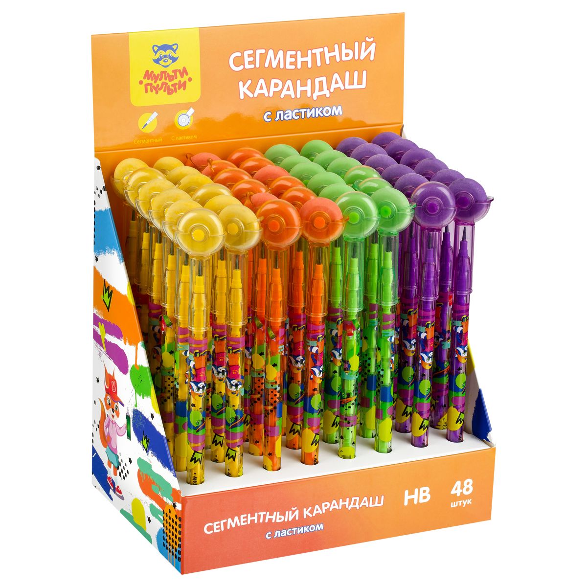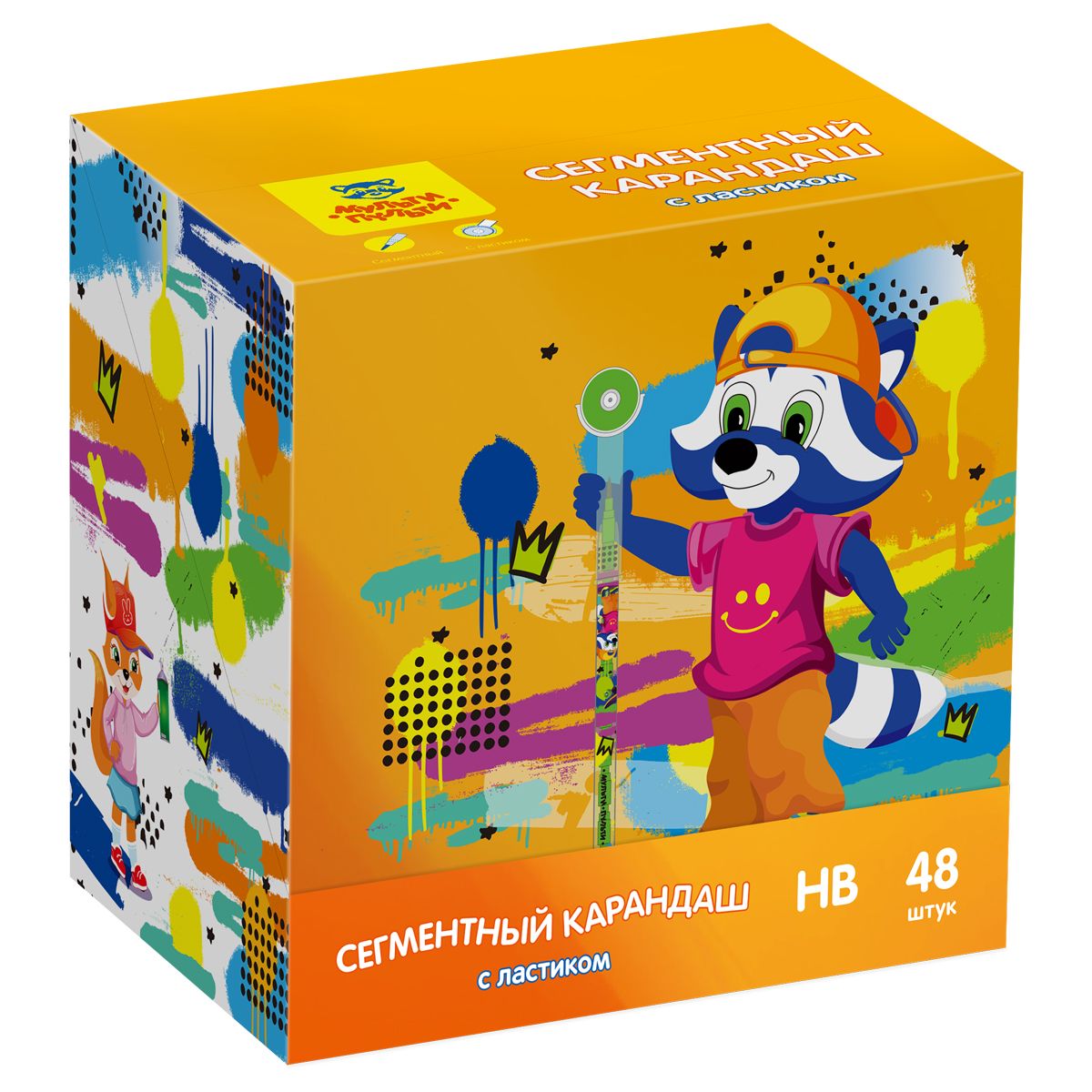 Карандаш сегментный Мульти-Пульти "Енот в городе", с ластиком, ассорти