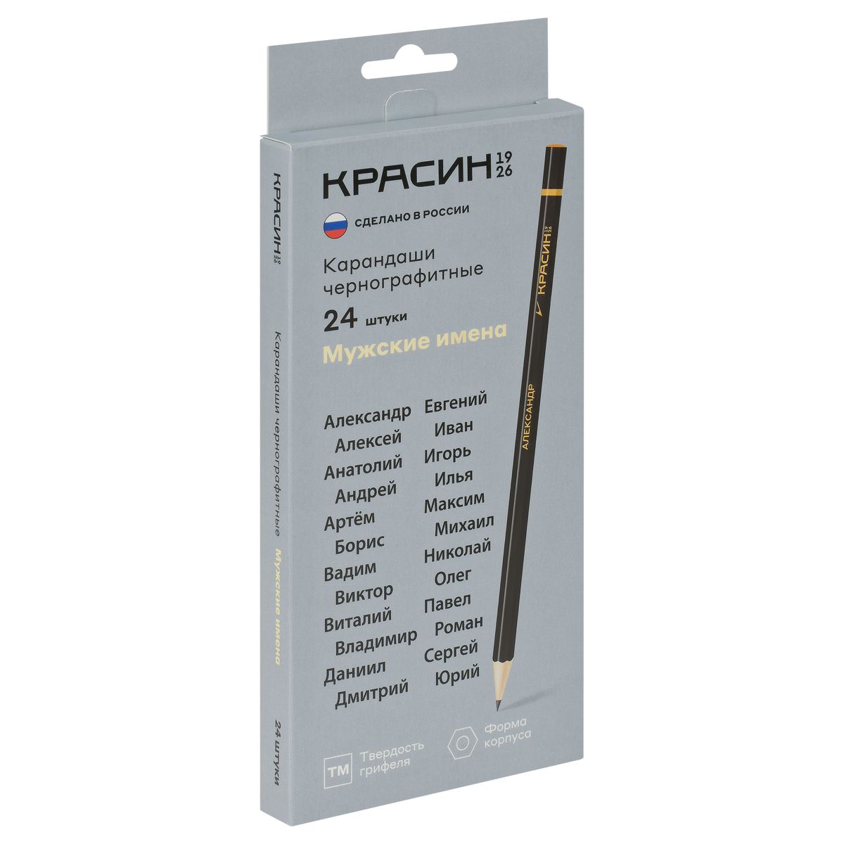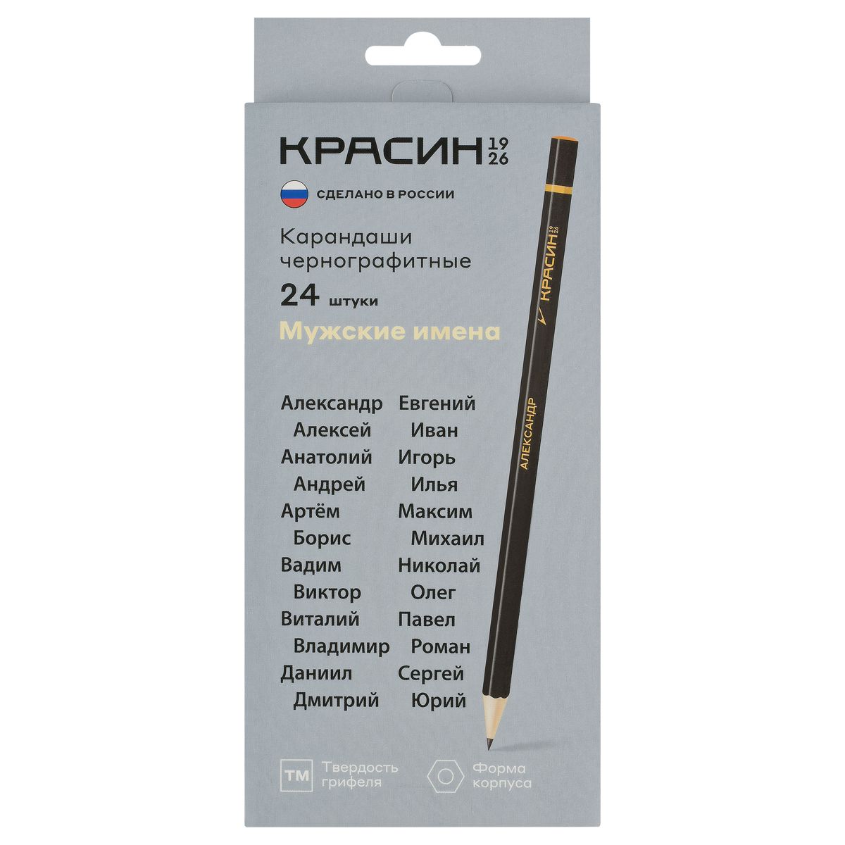 Карандаши ч/г Красин "Мужские имена" ТМ (НВ), шестигр., заточен., ассорти, карт. упаковка., европодвес