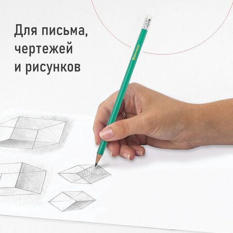 Карандаши чернографитные BRAUBERG НАБОР 12 шт., НВ, с резинкой, пластиковый зеленый корпус, 180678