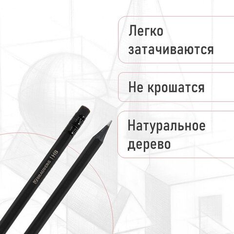 Карандаши чернографитные BRAUBERG НАБОР 6 шт., "Black Jack", НВ, с резинкой, черные, дерево, заточенные, 180608