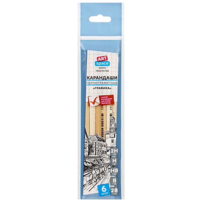 Набор карандашей ч/г ArtSpace "Графика" 6шт., 2H-2B, заточен., пакет, европодвес
