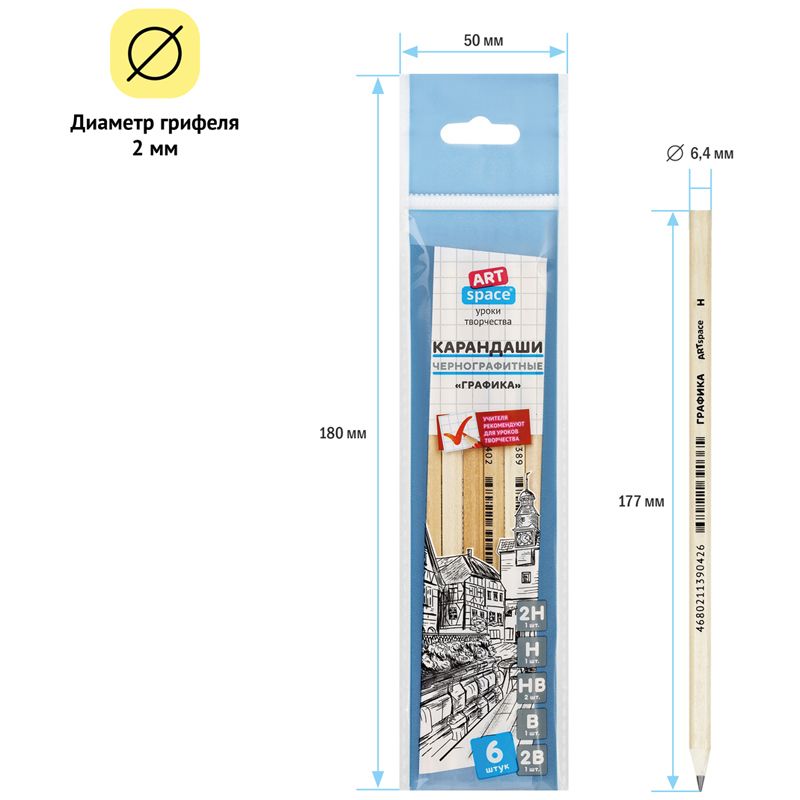 Набор чернографитных карандашей ArtSpace из натурального дерева различной твёрдости: 2B, B, HB, H, 2H. В наборе 6 карандашей, заточенные, шестигранный корпус. Изделия отлично подходят для выполнения чертёжных, технических, графических и художественных работ. Цвет корпуса – натуральное дерево, упаковка – пакет с европодвесом.