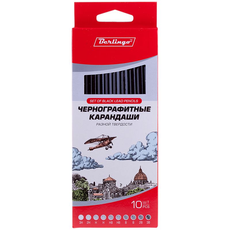 Набор карандашей ч/г Berlingo 10шт., 3H-3B, заточен., картон. упаковка, европодвес