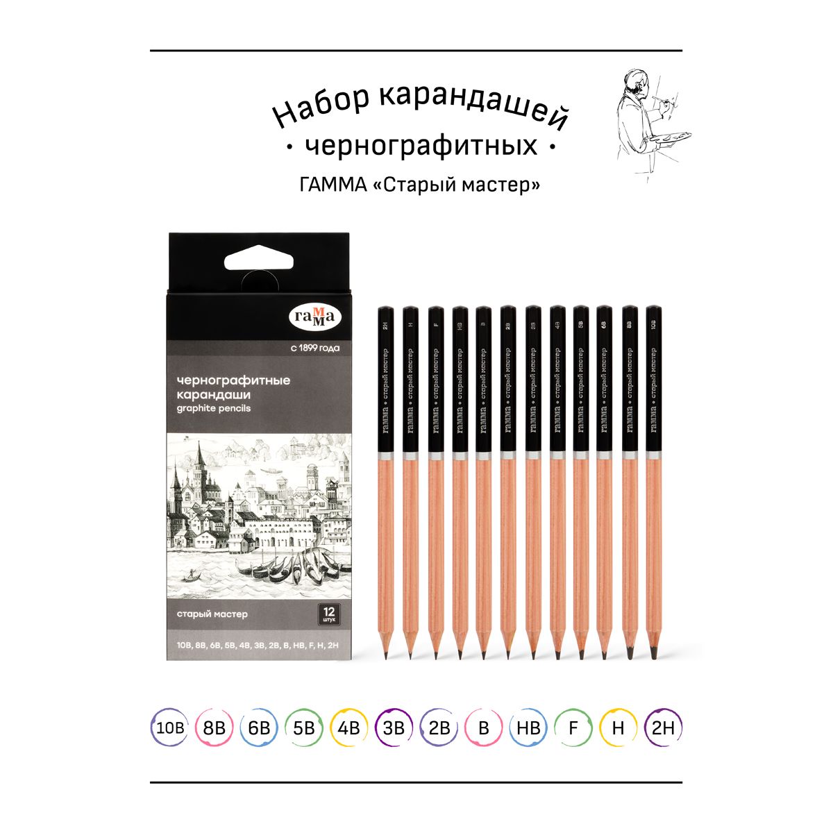 Набор карандашей ч/г Гамма 12шт., 10B-2H, картон. упаковка, европодвес