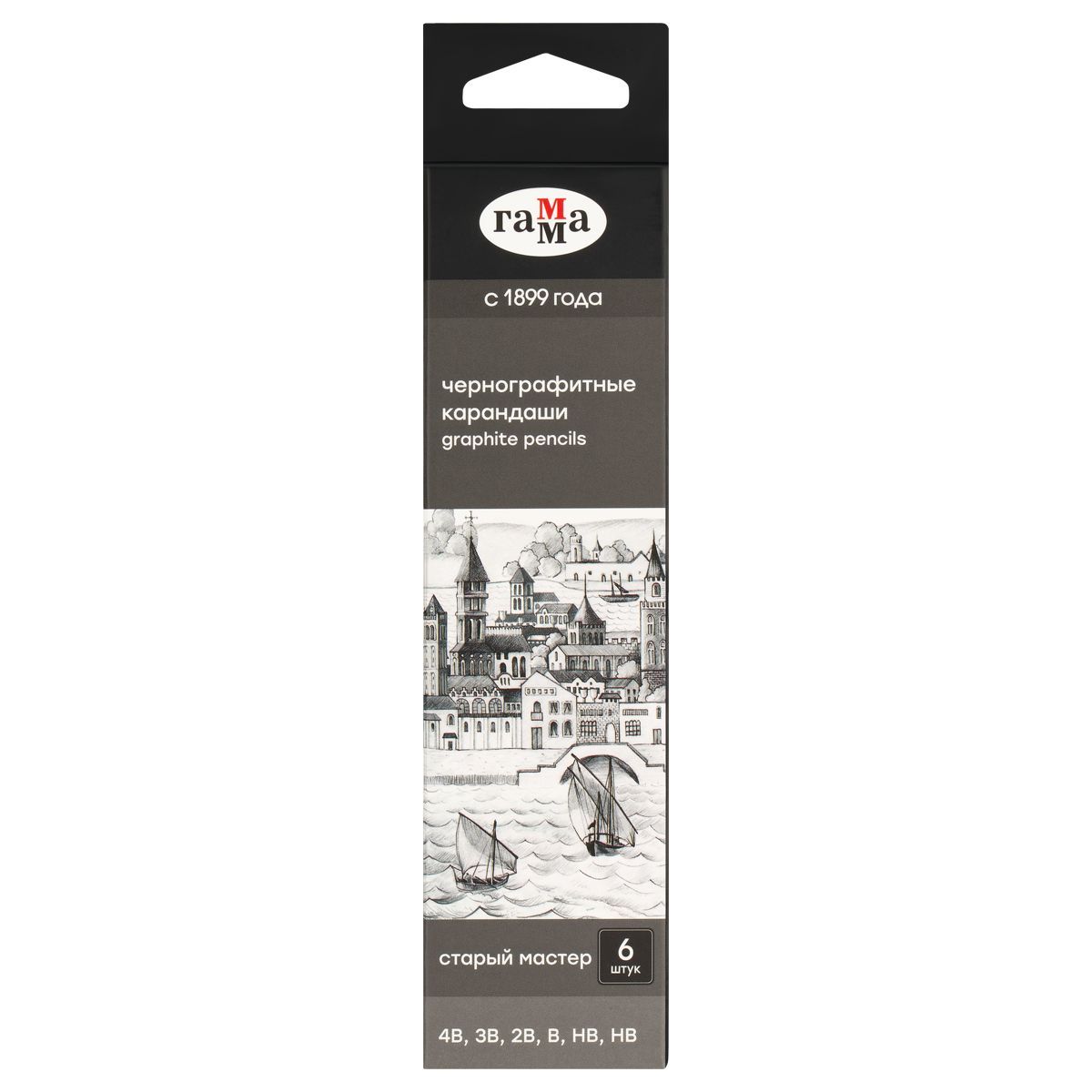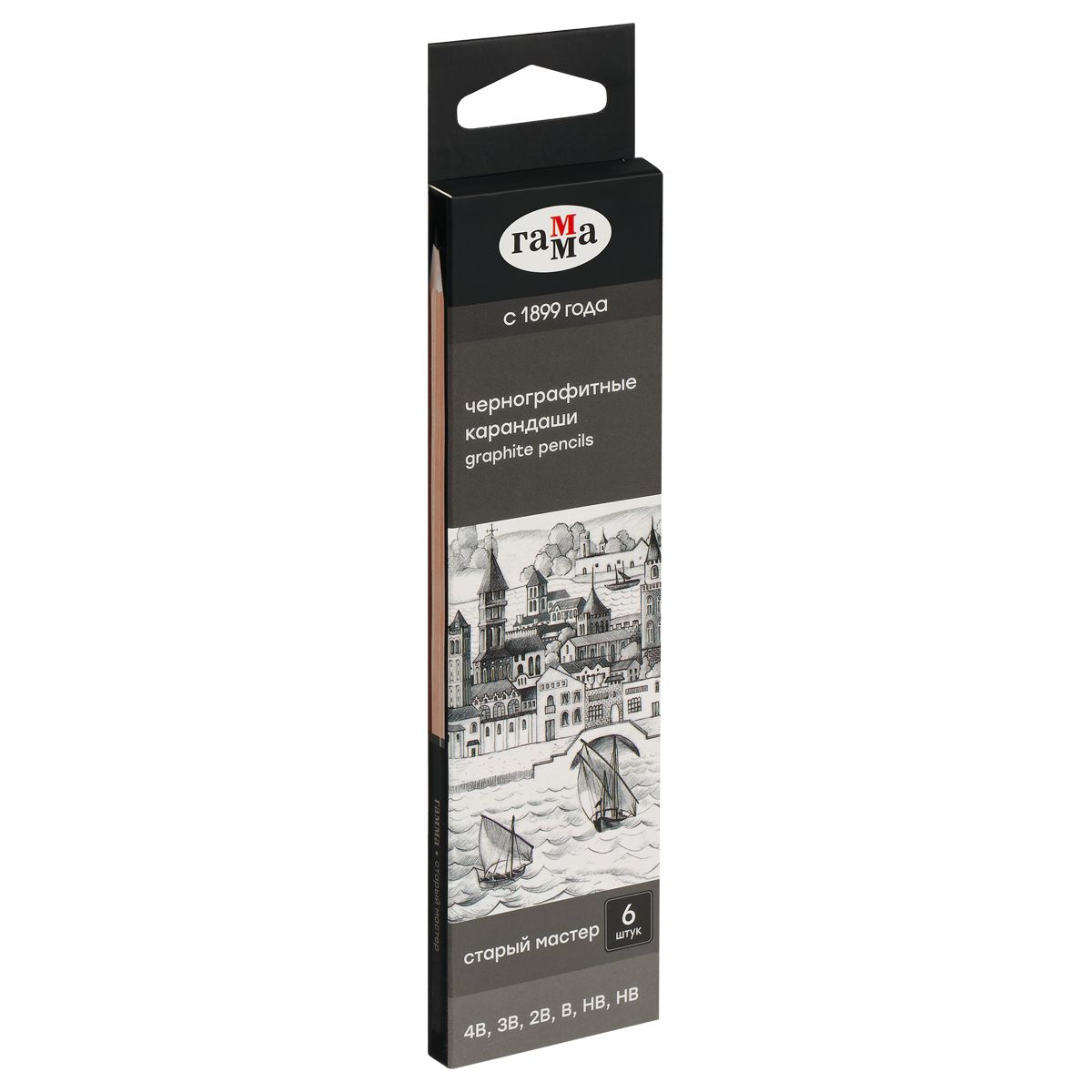 Набор карандашей ч/г Гамма 6шт., 4B-HB, кедр, картон. упаковка, европодвес