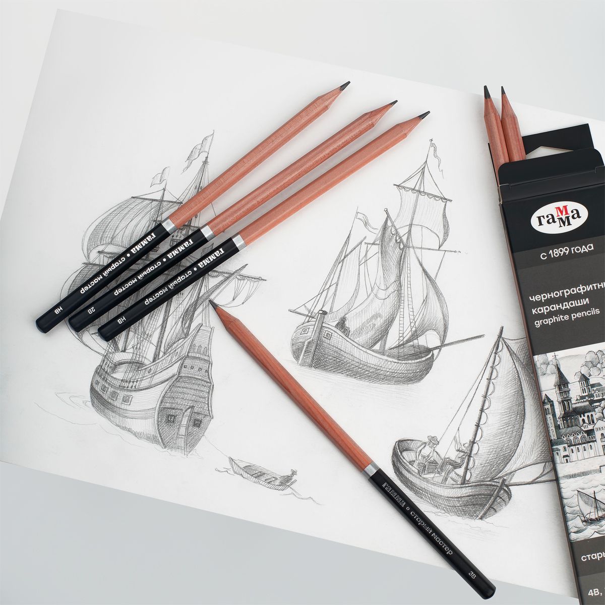 В карандашах ГАММА используется японский грифель премиум-класса, который позволяет с легкостью получать равномерную и четкую штриховку, качественную прорисовку деталей. Разные степени твердости помогают с легкостью передать темные, средние и светлые тона, варьировать толщину линии. Благодаря специальной равномерной проклейке грифеля в несколько этапов карандаши не крошатся и не ломаются даже после падения.