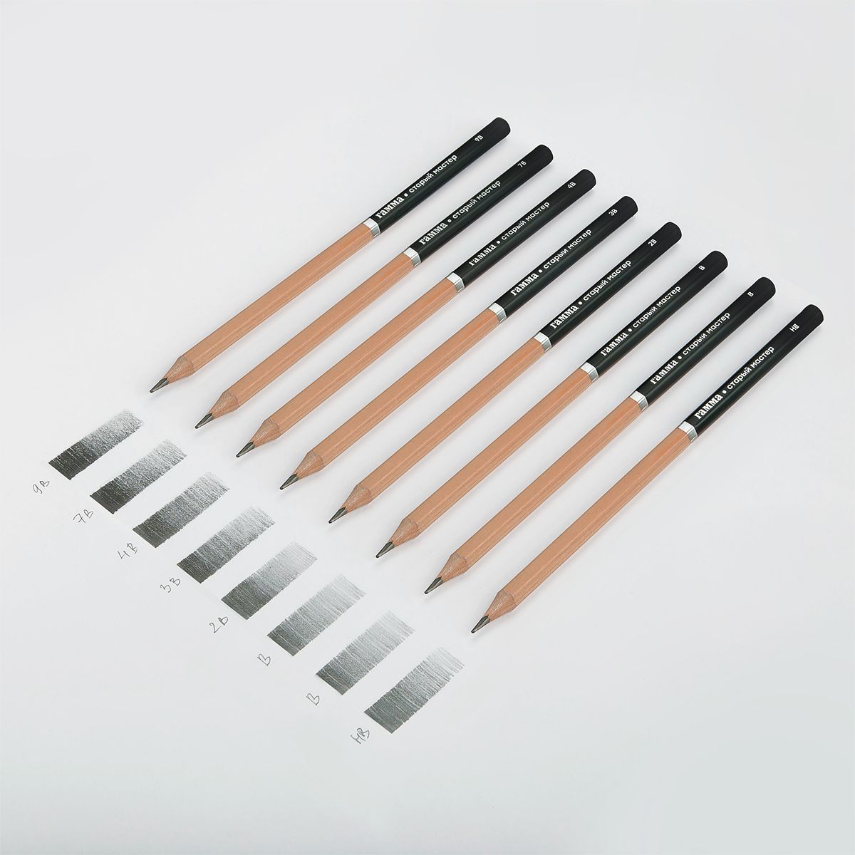 • Твёрдость: 9B, 7B, 4B, 3B, 2B, B, HB;