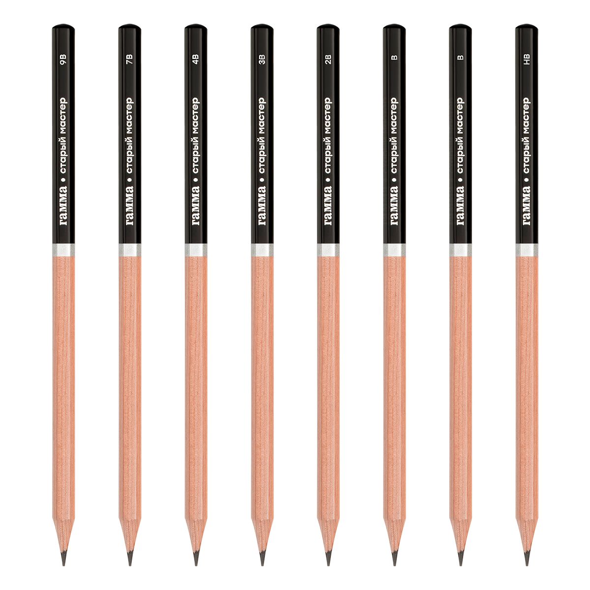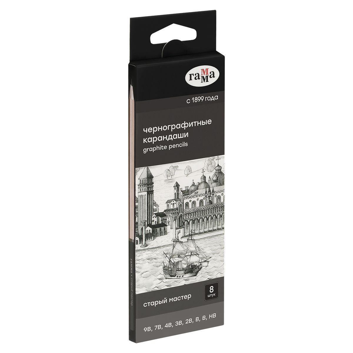Набор карандашей ч/г Гамма 8шт., 9B-HB, кедр, картон. упаковка, европодвес