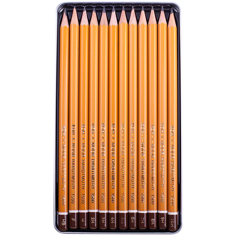 Набор карандашей ч/г Koh-I-Noor "1500 Technic" 12шт., HB-10H, заточен., метал. пенал
