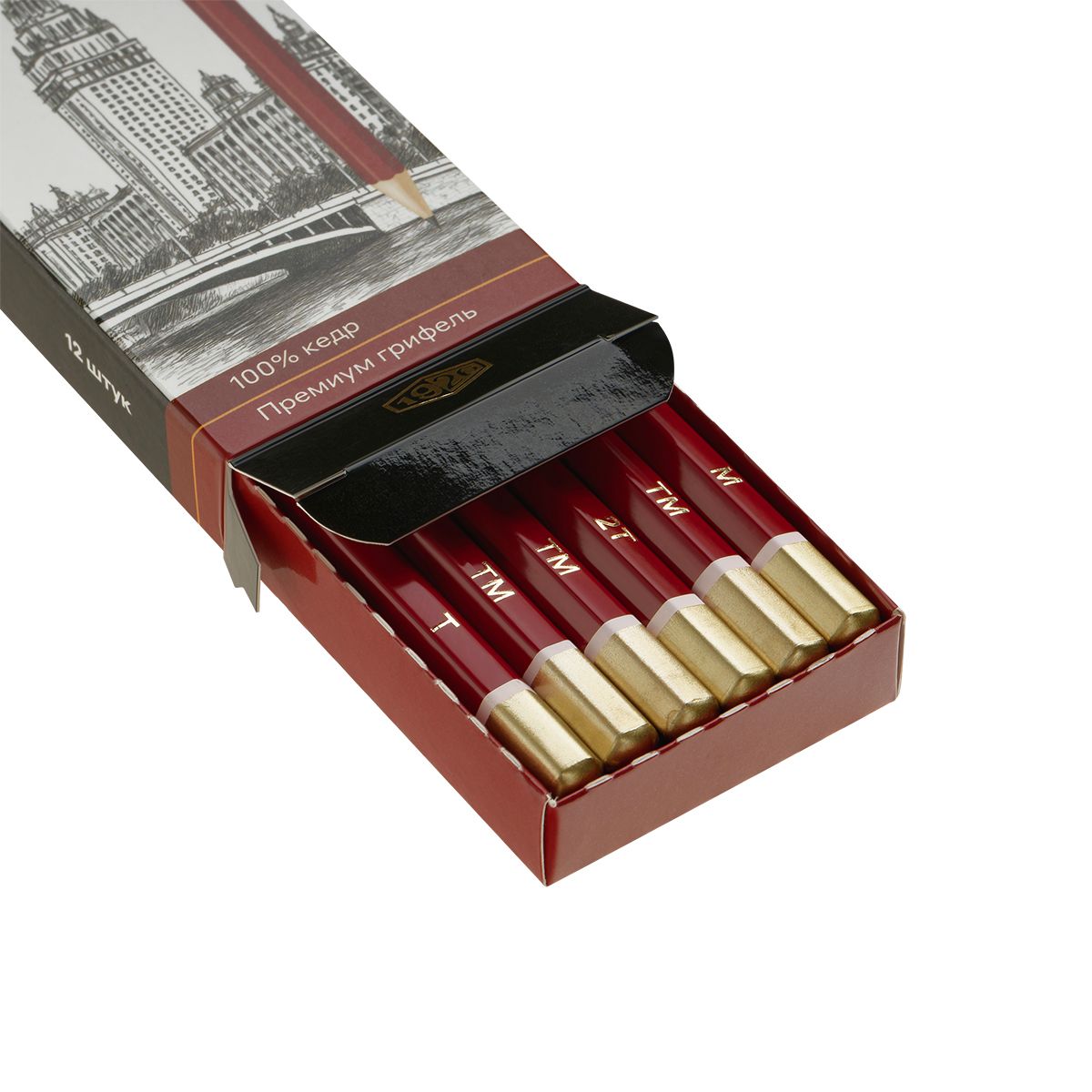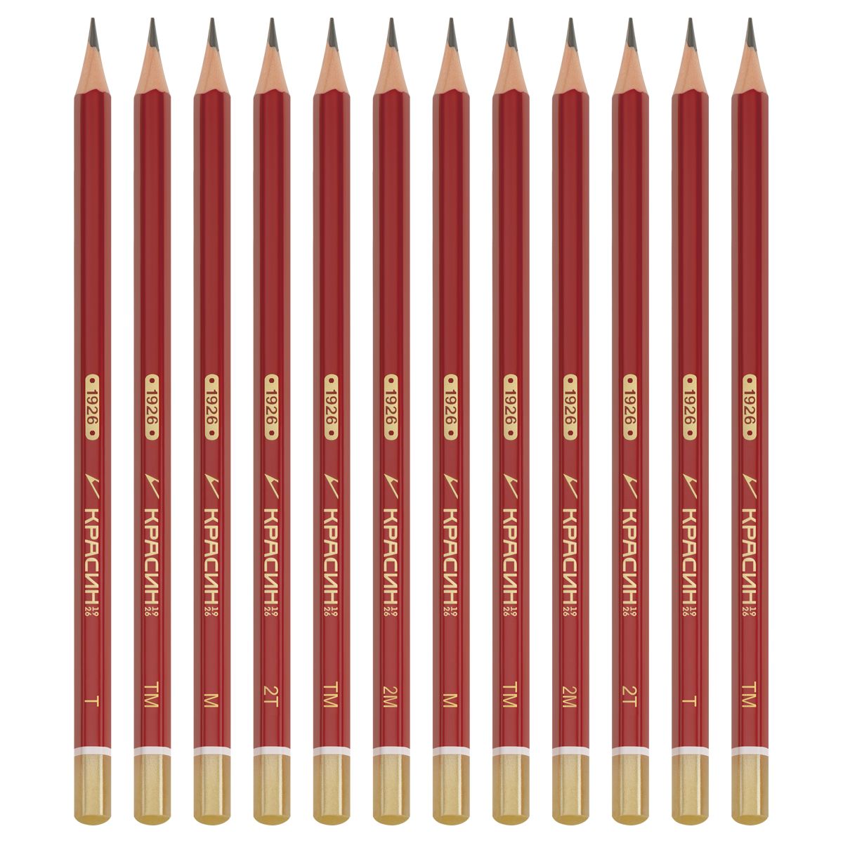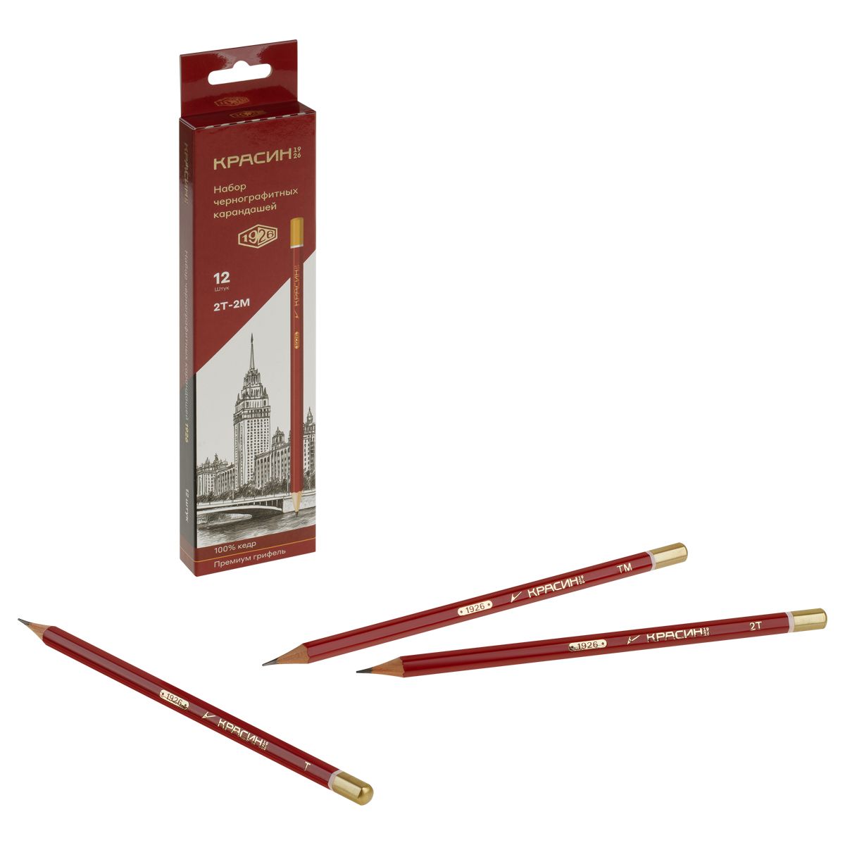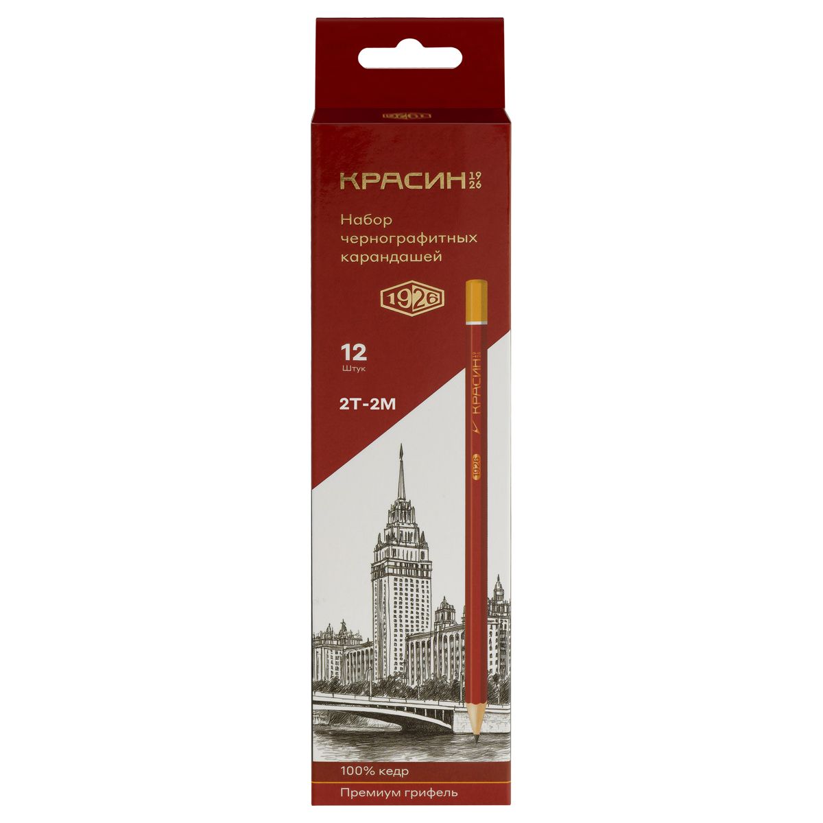 Набор карандашей ч/г Красин "1926" 12шт., 2Т(H)-2М(B), КЕДР, заточен., карт.пенал, европодвес