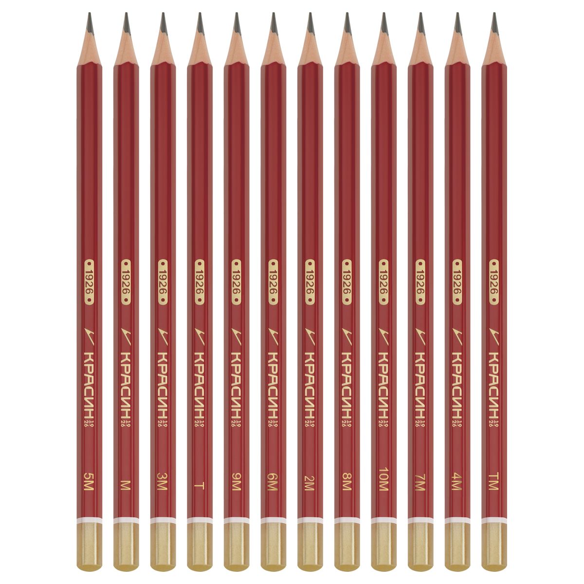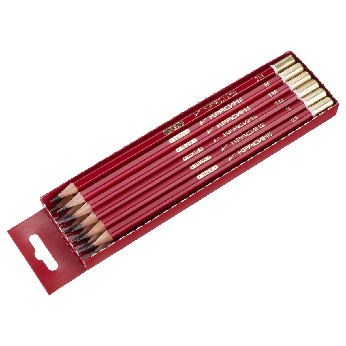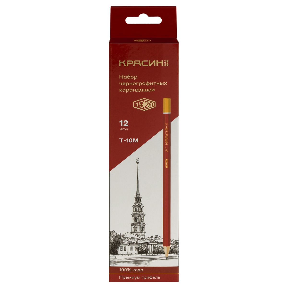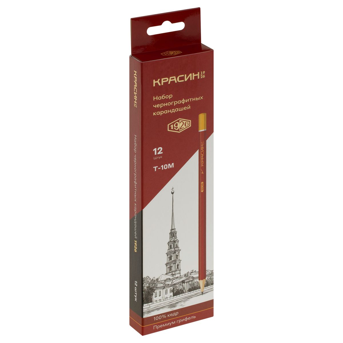 Набор карандашей ч/г Красин "1926" 12шт., Т(H)-10М(B), КЕДР, заточен., карт.пенал, европодвес