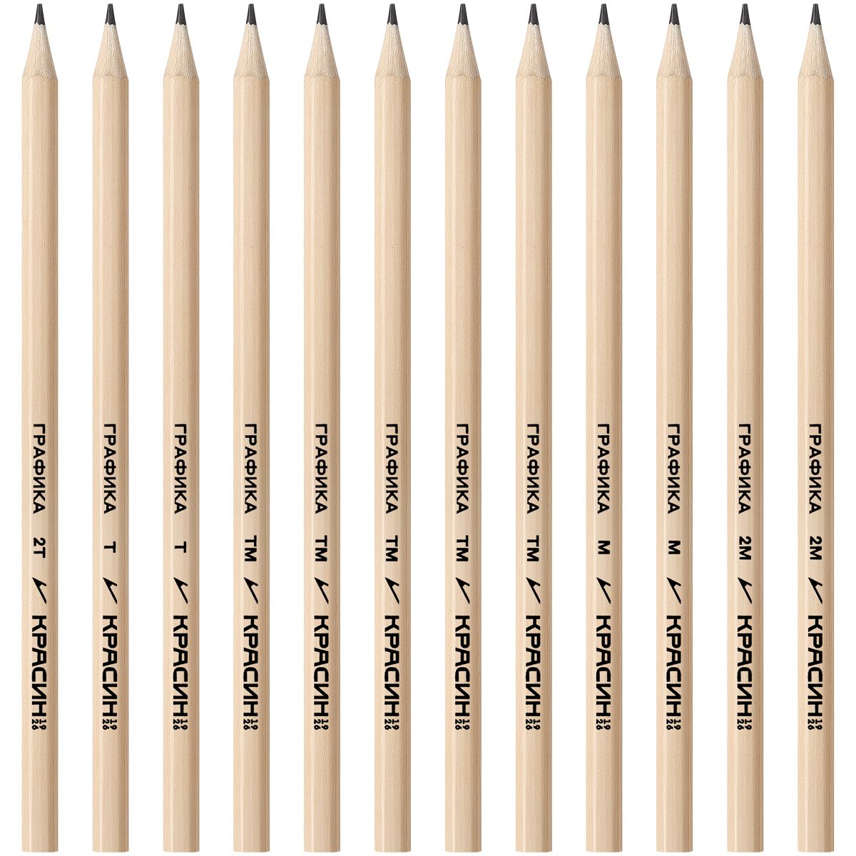Набор карандашей ч/г Красин "Графика", 12шт., 2H-2B, заточен., пакет, европодвес