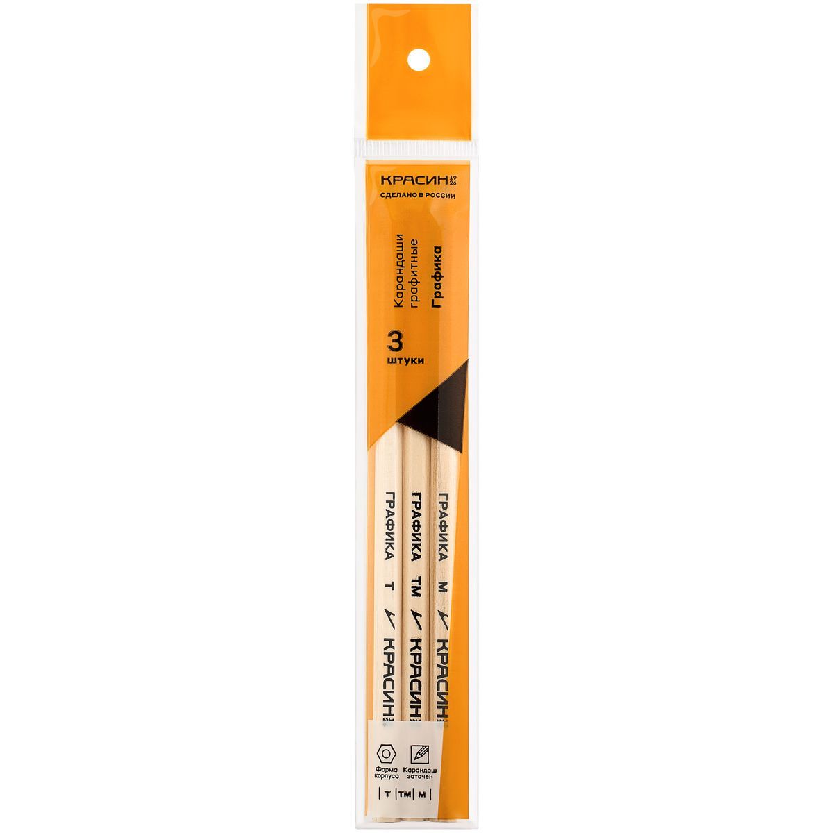 Набор карандашей ч/г Красин "Графика", 3шт., Н, HB, В, заточен., пакет, европодвес