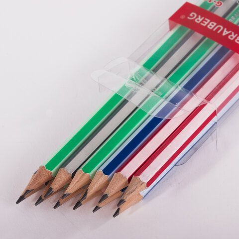 Набор карандашей чернографитных BRAUBERG "G-100" 12 шт., HB, с ластиком, корпус ассорти, 181716