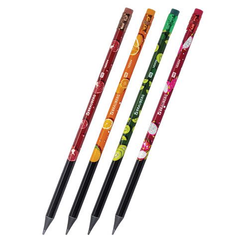 Набор карандашей чернографитных BRAUBERG "JUICY FRUIT", 12 штук, HB, с ластиком, корпус ассорти, 182034