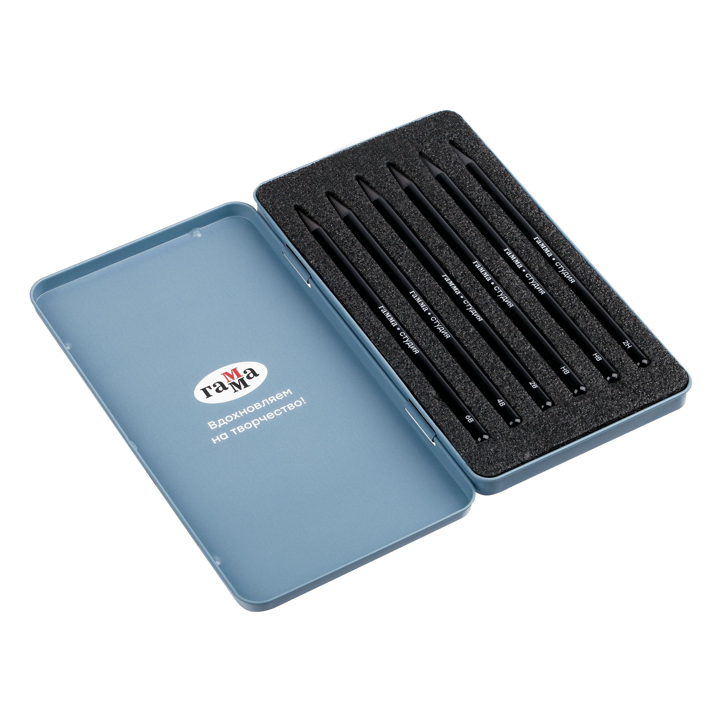 Набор карандашей цельнографитных ч/г Гамма "Студия" 6шт., 6B-2H, метал. упаковка