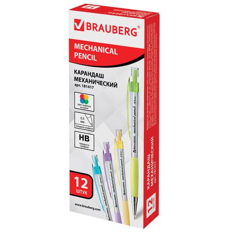 Карандаш механический 0,5 мм, BRAUBERG "Elegant", резиновый грип, корпус ассорти, 181417