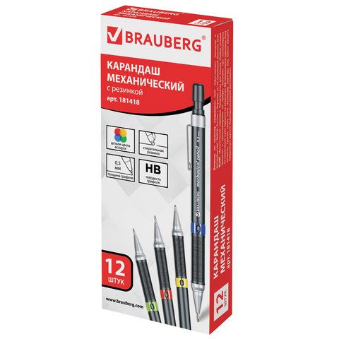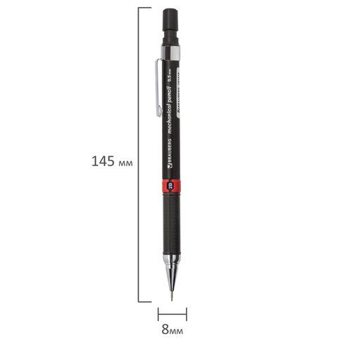 Карандаш механический 0,5 мм, BRAUBERG "Ring", ластик, корпус черный, детали ассорти, 181418