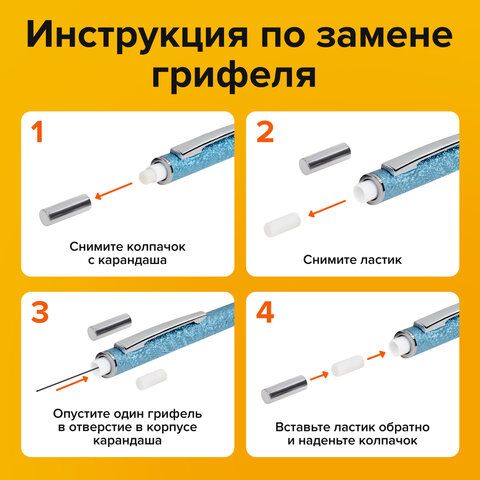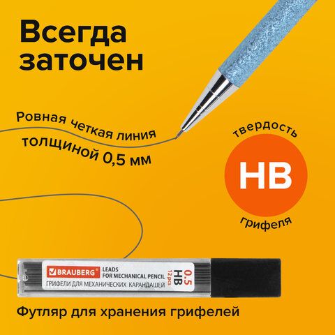 Карандаш механический 0,5 мм + грифели HB 12 штук на блистере, BAUBERG "OCEAN BLUE", 181970