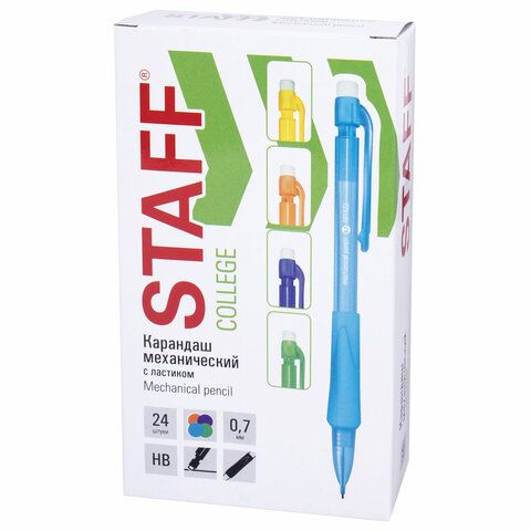 Карандаш механический 0,7 мм, STAFF "College" MP-422, ластик, резиновый грип, корпус тонированный ассорти, 181423