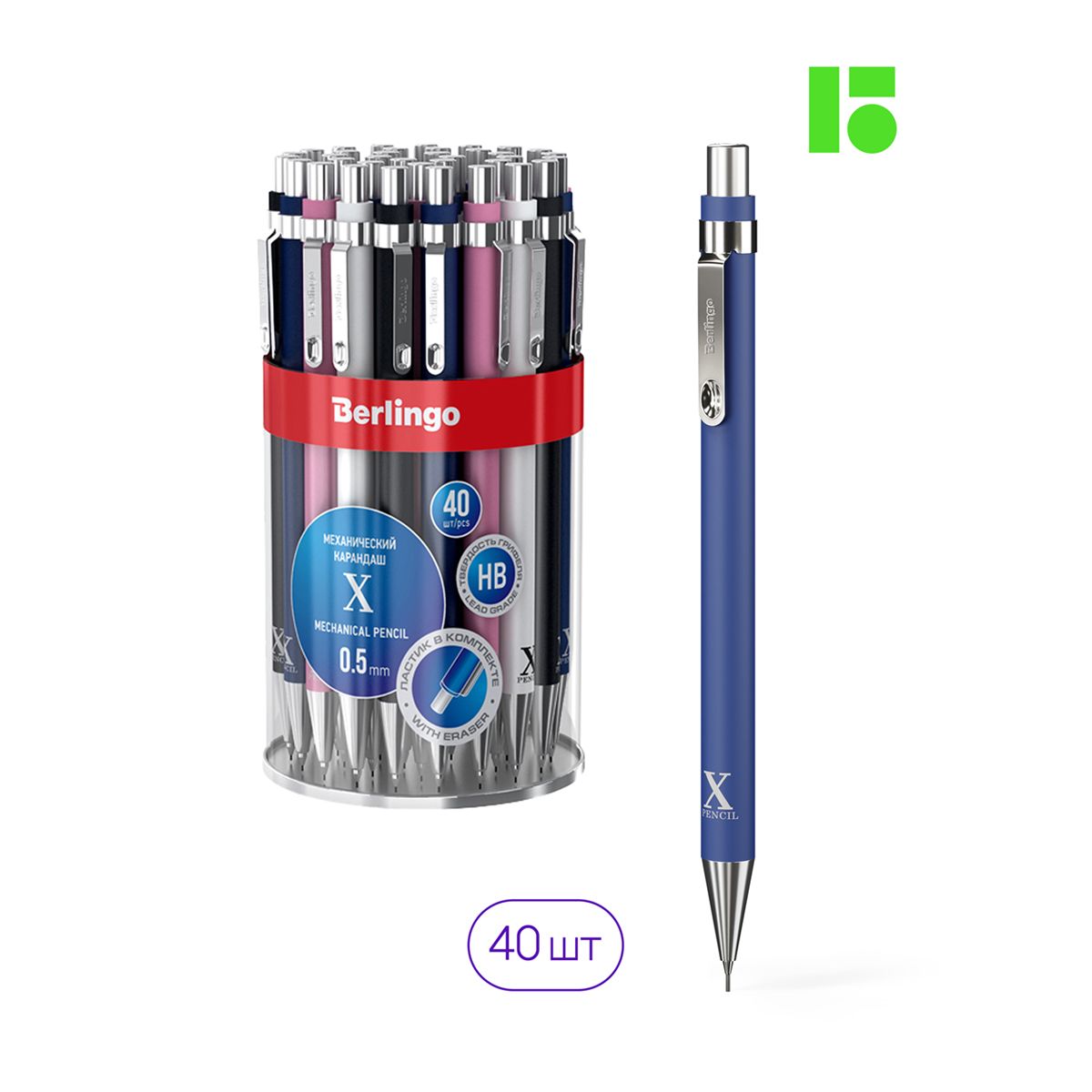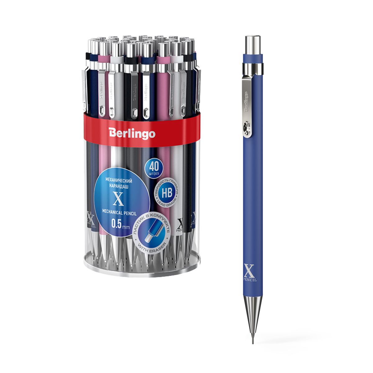 Карандаш механический Berlingo "X" 0,5мм, с ластиком, ассорти