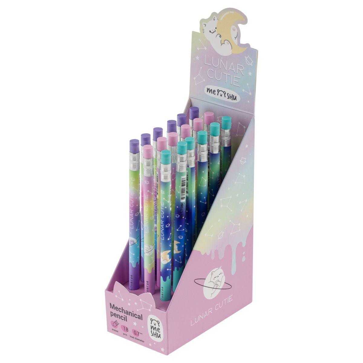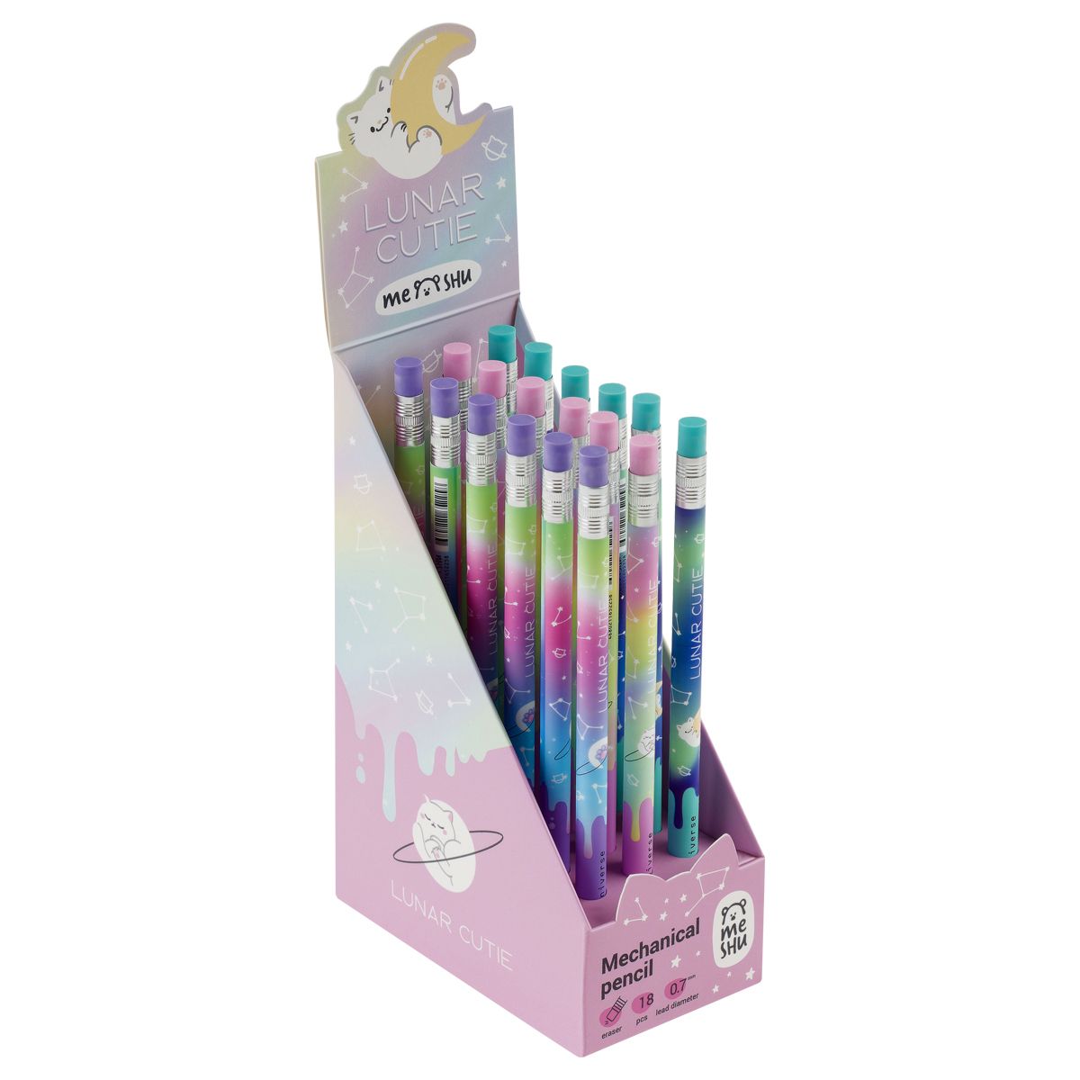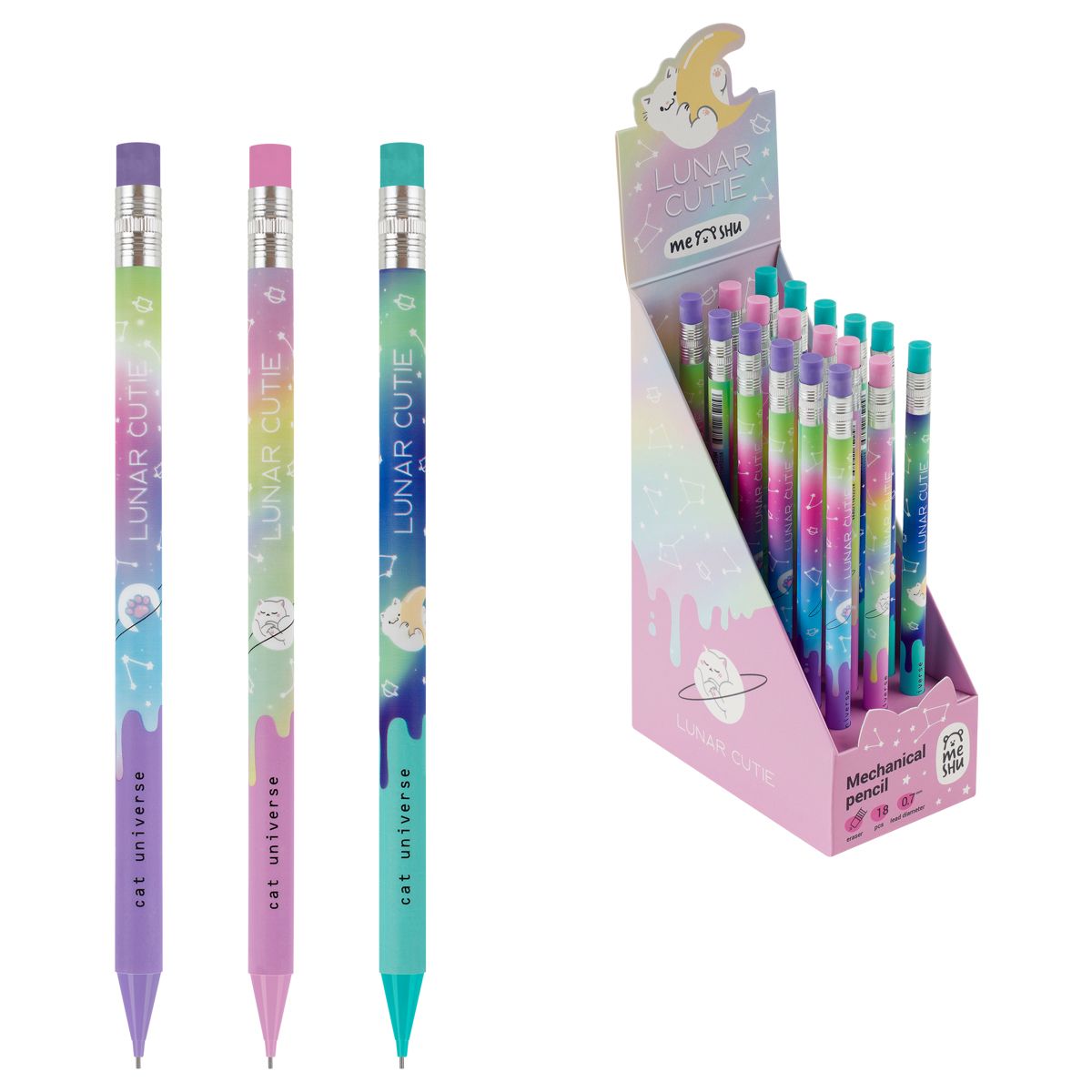 Карандаш механический MESHU "Cat Universe", печать на корпусе, с ластиком, 0,7мм, ассорти