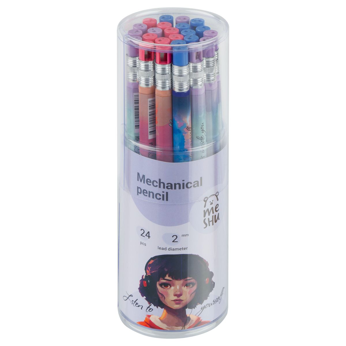 Карандаш механический MESHU "Kawaii", печать на корпусе, 2,0мм, софт-тач, ассорти, с точилкой для грифеля