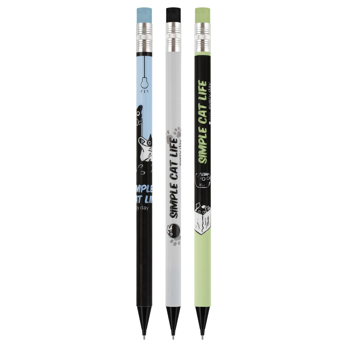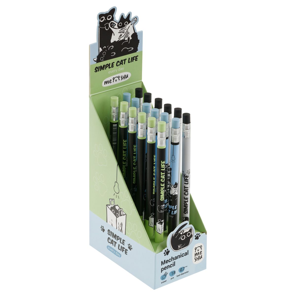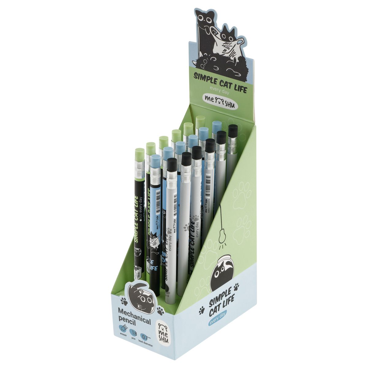 Карандаш механический MESHU "Meowsy", печать на корпусе, с ластиком, 0,7мм, ассорти